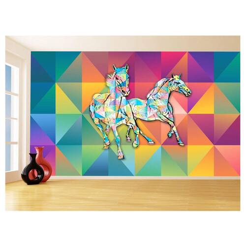 Papel De Parede Animais Pop Art Cavalos Cores 3,5M Pxa368