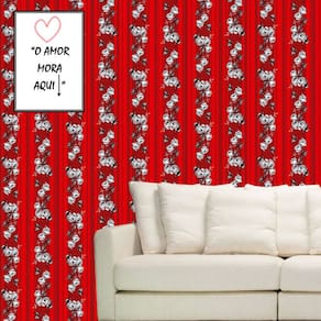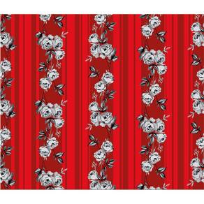 Papel de Parede Auto Adesivo Lavável Listrado Floral Vermelh