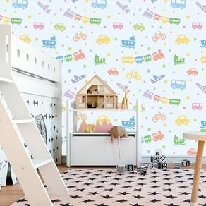 Papel De Parede Azul E Brinquedos Coloridos Infantil Adesivo