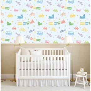 Papel De Parede Azul E Brinquedos Coloridos Infantil Adesivo