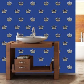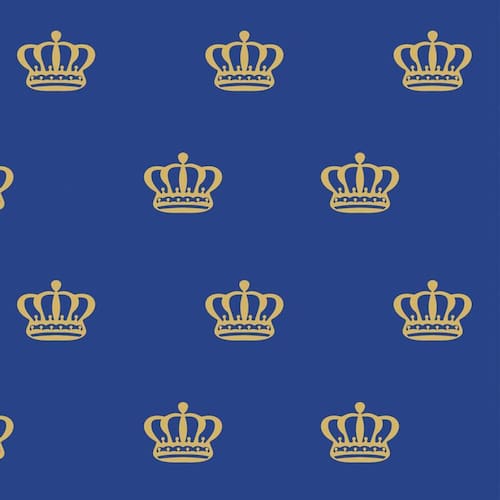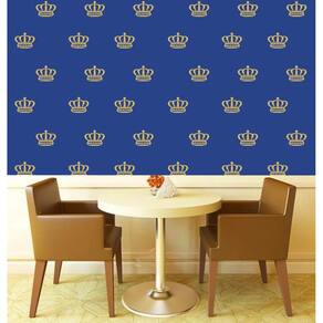 Papel de parede azul escuro e coroa dourada autocolante sala