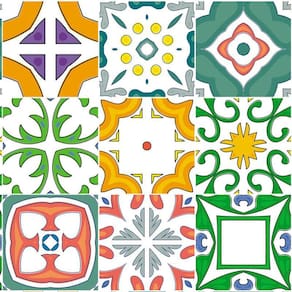 Papel de parede azulejo vermelho verde laranja cozinha pia