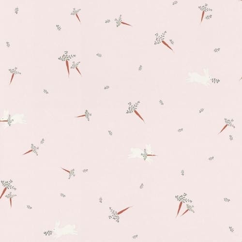 Cenouras? Até muitas. E agora os pequenos jovens podem até ir pulando alegremente pelo ambiente. Sobre o fundo rosa claro, que transmite um ar bastante agradável.