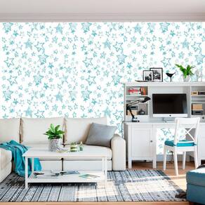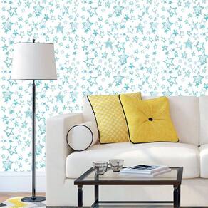 Papel De Parede Branco Com Estrelas Azul Claro Adesivo Sala