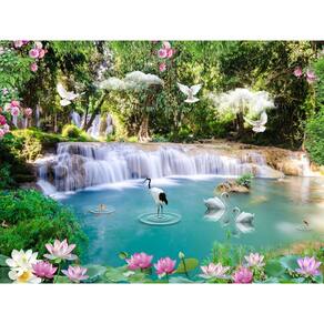 Papel De Parede Cachoeiras Animais Pássaros 3D Xch09 3M²