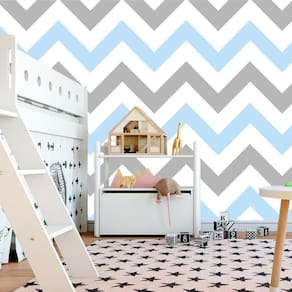 Papel De Parede Chevron Azul Cinza Branco Decorativo Adesivo