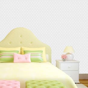 Papel de parede cinza e circulos branco poa adesivo lavavel