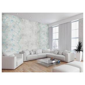 Papel De Parede Concreto Linhas Azul Turquesa 3,5M Kkt269