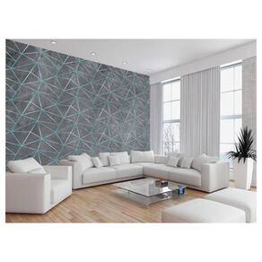 Papel De Parede Concreto Linhas Azul Turquesa 3,5M Kkt290