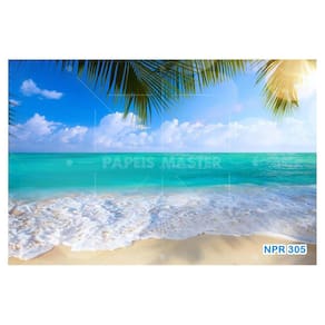 Papel De Parede Coqueiros Praia Mar Azul Água 3,5M Npr305