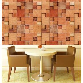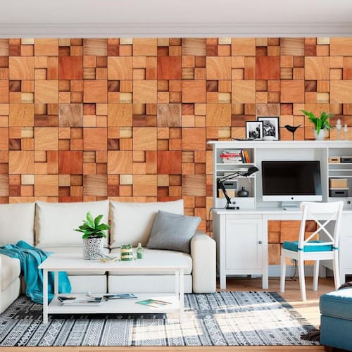 Papel de parede cubos madeira mogno claro autocolante sala