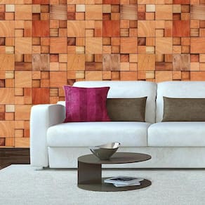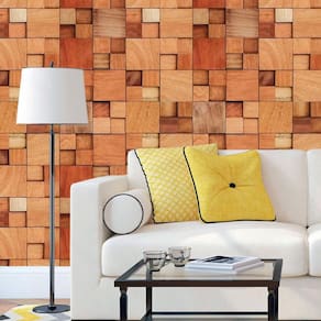 Papel de parede cubos madeira mogno claro autocolante sala