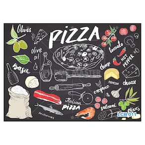 Papel De Parede Estilo Lousa Pizza Ingrediente 3,5M Lcb11
