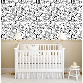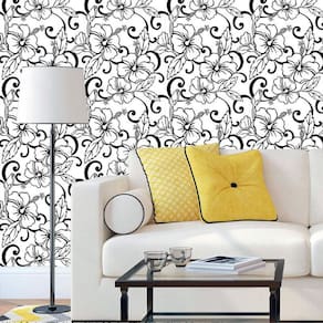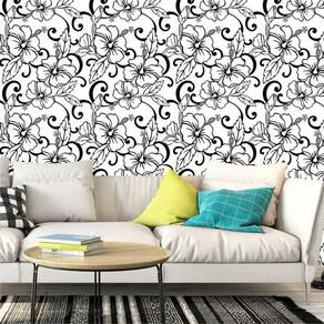 Papel De Parede Floral Flores Preta Sem Pintura Adesivo Sala
