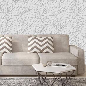 Papel De Parede Floral Galhos Com Fundo Cinza Adesivo Sala