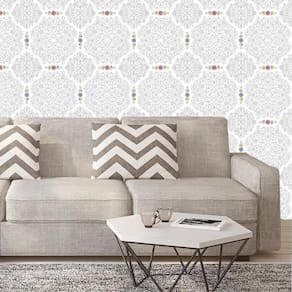 Papel de parede flores arabesco linhas cinza adesivo sala