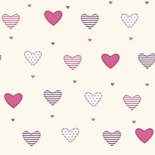 Papel De Parede Fofura Baby Coraçoes Rosa Fundo Bege Ff4058