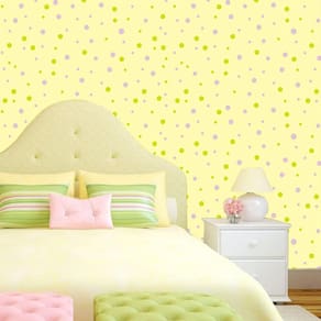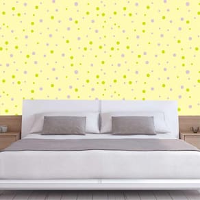 Papel de parede fundo amarelo circulos rosa e verde adesivo