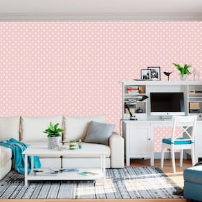Papel de parede fundo rosa e circulos branco poa autocolante