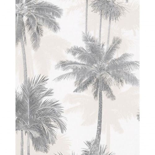 Esse papel de parede de palmeira na cor bege é uma linda homenagem ao tema botânico, bastante contemporâneo e fresco. A sombra ao fundo oferece um efeito tridimensional à arte.