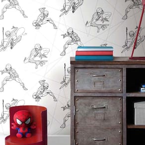 Renove a decoração do quarto dos meninos de forma radical aplicando o papel de parede do homem aranha da coleção Disney York III.