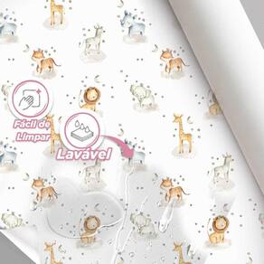 Vantagens: Aplicação rápida, fácil e sem sujeira; Não precisa de cola; Lavável com pano macio umedecido em água e sabão neutro e resistente à água; Antimofo e antibacteriano; Não tóxico Antichamas Sobreposição de 1cm e continuidade dos desenhos para facilitar a emenda do próximo rolo.