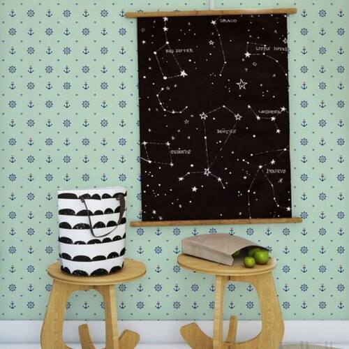 O Papel de Parede Marinheiro Verde é autocolante, dispensando o uso de cola como em Papéis de Paredes convencionais. Você deverá apenas limpar a parede ou onde será aplicado com pano seco, retirar a película protetora e aplicá-lo.