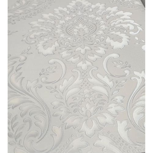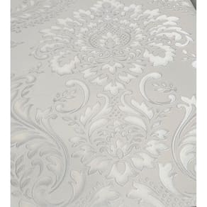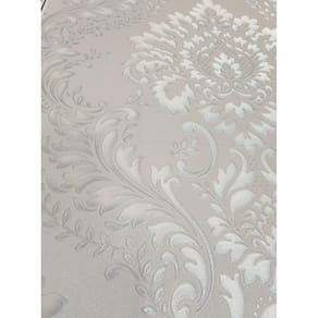 Papel de parede importado, coleção Tesori italiani, proteção em vinilico limpável, estilo arabesco cor cinza claro e traços bege 45015