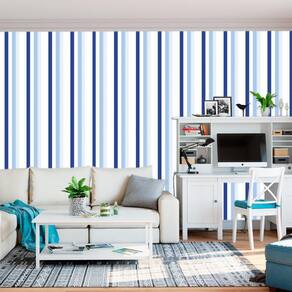 Papel De Parede Listrado Cores Azul Adesivo Sala Quarto