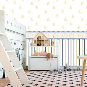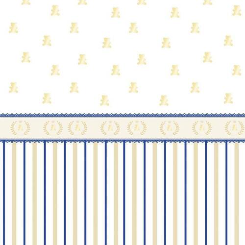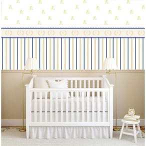 Papel De Parede Listrado E Faixa Dourado Com Azul Infantil