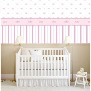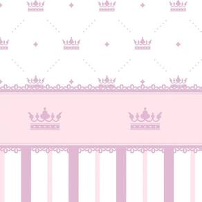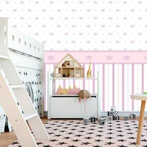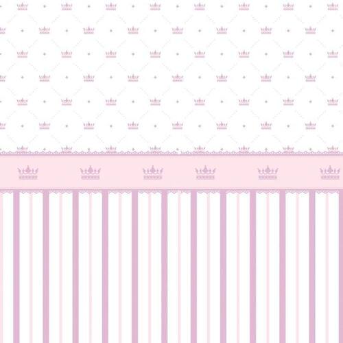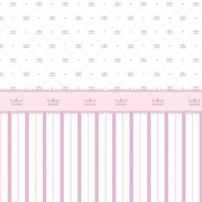 Papel De Parede Listrado Rosa E Lilas Com Coroa Infantil