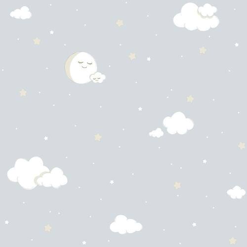 Papel De Parede Lullaby Lua Cheia Cinza 2213 Rolo: 10m X 0,53m