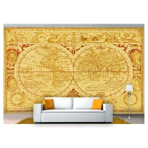 Papel De Parede Mapa Mundi Antigo Bege 7,50M² Nmu14