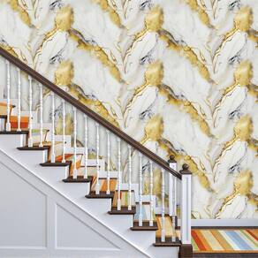 Papel De Parede Marmore Branco Dourado Autocolante Sala 1 unidade rolo tem 0,50 Largura Metros x 3,00 Altura Metros Observação: Há possibilidade de variação de cor em até 15%, devido à calibração dos monitores ou telas de Smartphones e Tablets. Não necessita de aplicação com cola, pois é autoadesivo. Basta destacar a proteção e aplicar sobre a superfície desejada. Trabalhamos com adesivo vinil fosco liso, sem brilho, o produto não possui relevos e texturas. Pode ser aplicado em superfície lisa e limpa preparada com massa corrida, como: paredes de gesso, com pintura acrílica, acetinada ou látex, balcões, vidros, azulejos, decoração portas, divisórias, moveis, objeto de madeiras, MDF, espelhos, geladeiras entre outros. Fabricamos os adesivos com uma sobreposição de 1 cm. No momento da aplicação uma parte deve sobrepor o outro 1 cm assim dando um encaixe perfeito no seu ambiente. Outra qualidade também que nosso papel é resistente água, antibactéria, anti-mofo e não propaga chamas. DADOS TÉCNICOS DO PRODUTO: Tamanho Medida cada Rolo: 0,50 Largura metros x 3,00 Altura metros Área de cobertura: 1,50mTinta: Não tóxica / sem cheiroMaterial: Vinil Fosco PVC LisoImagem: Impresso em alta resoluçãoSobreposição de imagem: 10 mm ou 1 cmTipo: AutocolanteEspessura: 0,08mmTempo de secagem ou manuseio após a instalação: Imediata