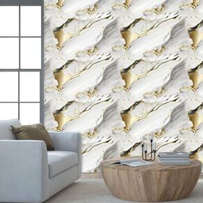 Papel De Parede Marmore Dourado e Cinza Autocolante Sala 1 unidade rolo tem 0,50 Largura Metros x 3,00 Altura Metros Observação: Há possibilidade de variação de cor em até 15%, devido à calibração dos monitores ou telas de Smartphones e Tablets. Não necessita de aplicação com cola, pois é autoadesivo. Basta destacar a proteção e aplicar sobre a superfície desejada. Trabalhamos com adesivo vinil fosco liso, sem brilho, o produto não possui relevos e texturas. Pode ser aplicado em superfície lisa e limpa preparada com massa corrida, como: paredes de gesso, com pintura acrílica, acetinada ou látex, balcões, vidros, azulejos, decoração portas, divisórias, moveis, objeto de madeiras, MDF, espelhos, geladeiras entre outros. Fabricamos os adesivos com uma sobreposição de 1 cm. No momento da aplicação uma parte deve sobrepor o outro 1 cm assim dando um encaixe perfeito no seu ambiente. Outra qualidade também que nosso papel é resistente água, antibactéria, anti-mofo e não propaga chamas. DADOS TÉCNICOS DO PRODUTO: Tamanho Medida cada Rolo: 0,50 Largura metros x 3,00 Altura metros Área de cobertura: 1,50mTinta: Não tóxica / sem cheiroMaterial: Vinil Fosco PVC LisoImagem: Impresso em alta resoluçãoSobreposição de imagem: 10 mm ou 1 cmTipo: AutocolanteEspessura: 0,08mmTempo de secagem ou manuseio após a instalação: Imediata