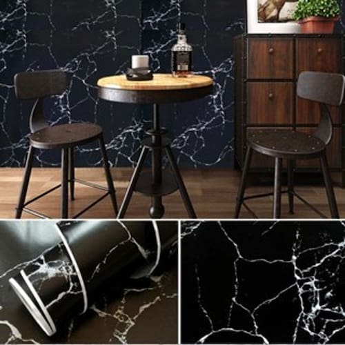 Papel de Parede Mármore Preto Adesivo Resistente Lavável Cozinha Banheiro e Revestimento de Móveis