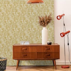 Disponível em cores quentes, esse papel de parede leva uma atmosfera alegre para seus ambientes. As folhas e flores trazem uma sensação de alegria para mais perto.