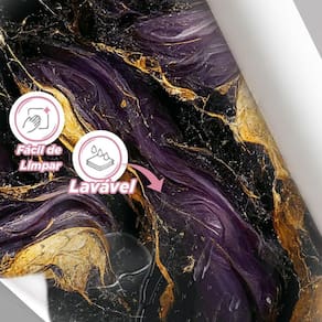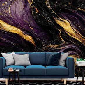 Papel De Parede Painel 3D Mármore Roxo Ouro Preto 2,5M