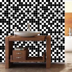 Papel de parede pastilha preto e branco autocolante cozinha