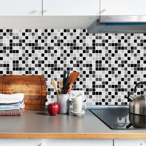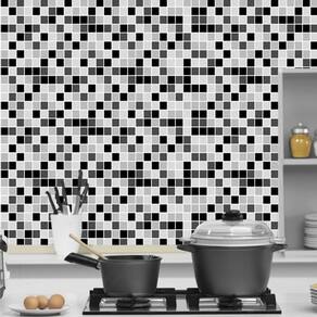 Papel de parede pastilhas preto e cinza autocolante cozinha