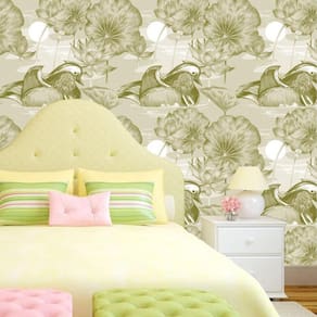 Papel de parede pato lagoa flores e lua autocolante lavável