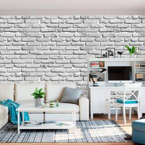 Papel De Parede Pedra Tijolos Cinza Autocolante Sala Quarto
