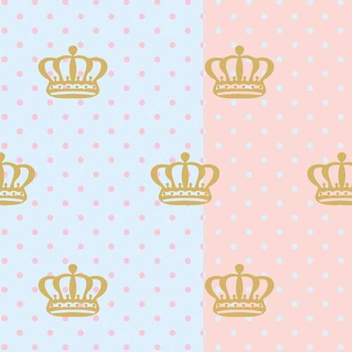 Papel de parede poa rosa e azul com coroa dourado adesivo