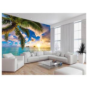 Papel De Parede Praia Mar Coqueiro Por Do Sol 3,5M Npr310