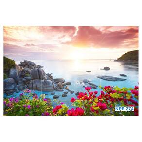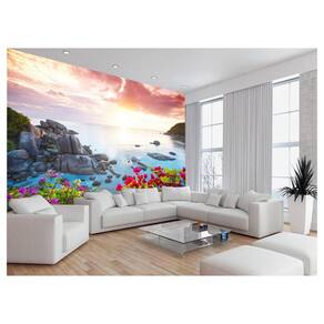 Papel De Parede Praia Mar Montanha Flores Céu 3,5M Npr274