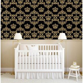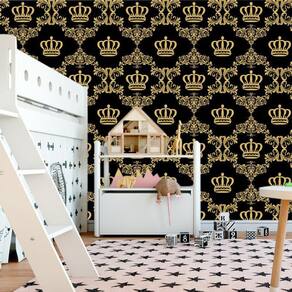 Papel De Parede Preto Com Coroa Dourada Infantil Autocolante