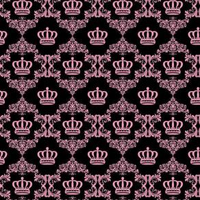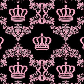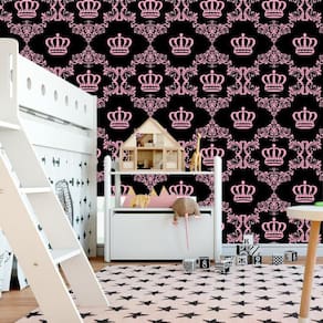 Papel De Parede Preto Com Coroas Rosas Infantil Adesivo