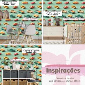 Tamanho do rolo: Altura: 3,00m Largura: 0,51m Área de cobertura de cada rolo: 1,5m