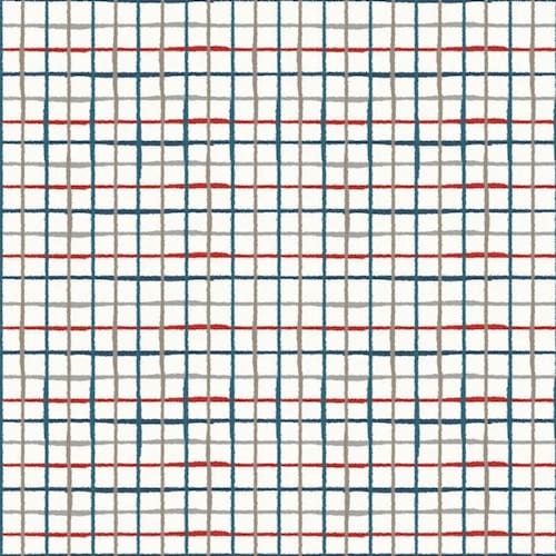 Papel De Parede Revoada Xadrez Aquarela Azul, Cinza E Vermelho 4424