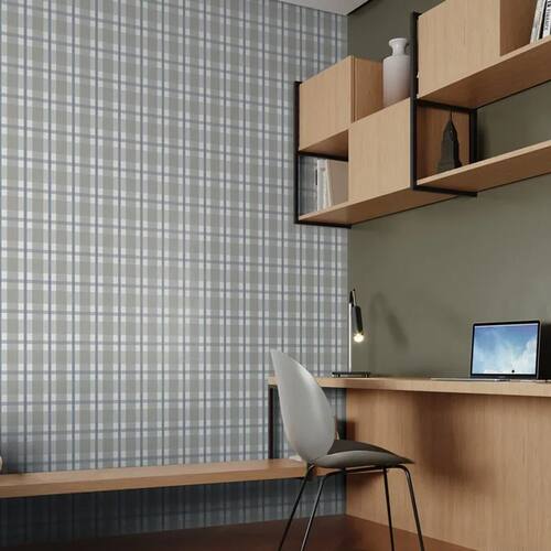 Papel de Parede Revoada Xadrez Cinza e Azul 4455